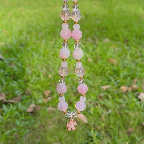 春意漸濃,願嶄新的開始隨初綻芬芳悄然降臨。櫻色燦爛而熾烈,這款吊飾散發著活力滿滿的心情,層疊粉珠攢成爛漫光景。你感受到嗎?盛放的櫻花正在喚發生機。🌸🌸材質:玻璃、金屬長度:主飾 15 cm ﹑吊環 7 cm(可能有差異)產品包括:一個吊飾、一個絲質袋和一個禮盒