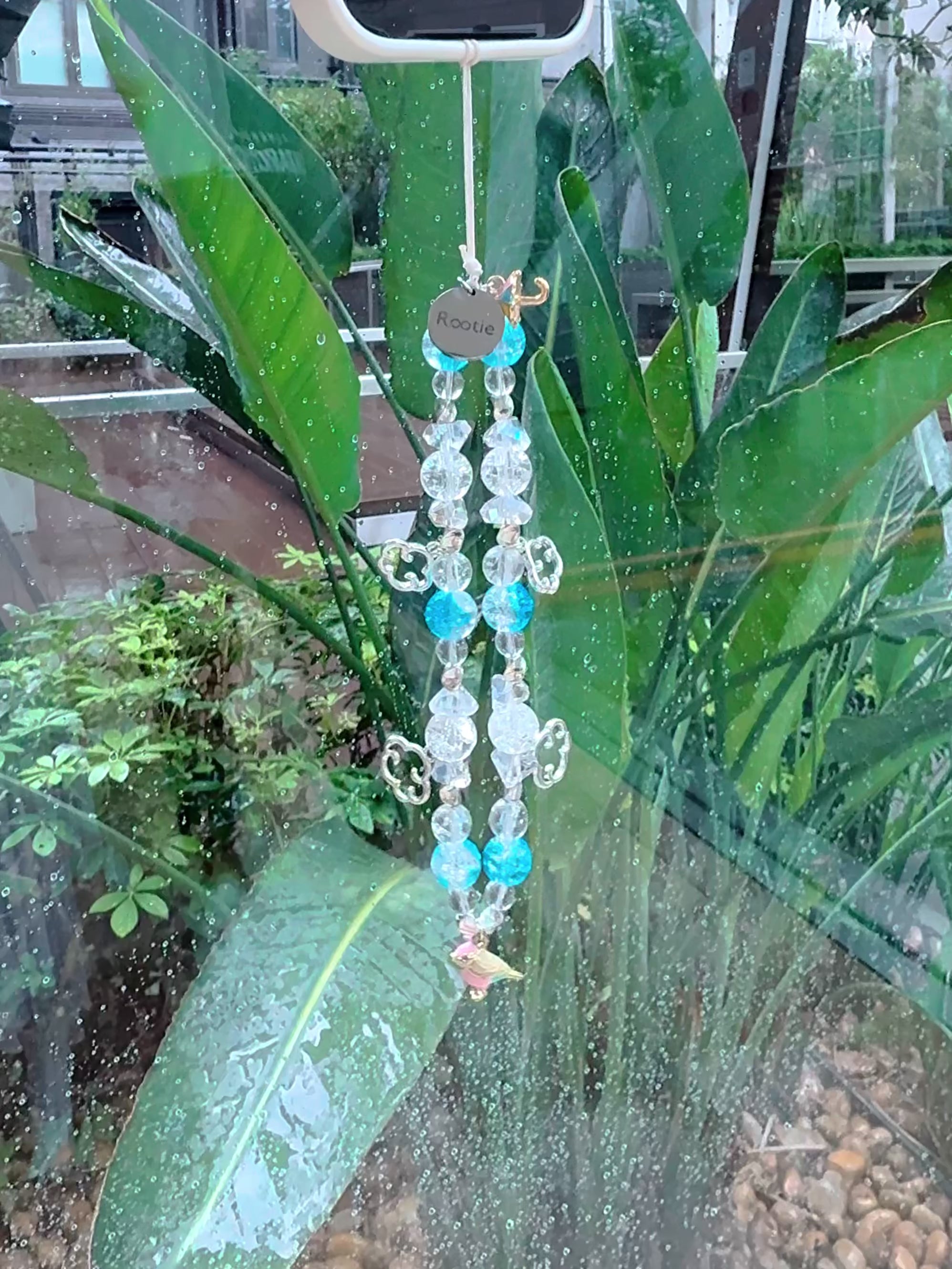 於雨滴輕落的寧靜節奏中,感受一方澄澈與平和,這款吊飾呈現療癒的心情。彩羽鳥兒安棲傘下,於寂靜時光中,織就一幀溫柔小憩。🌧️🌧️☂️材質:玻璃、金屬長度:主飾 15 cm ﹑吊環 7 cm(可能有差異)產品包括:一個吊飾、一個絲質袋和一個禮盒