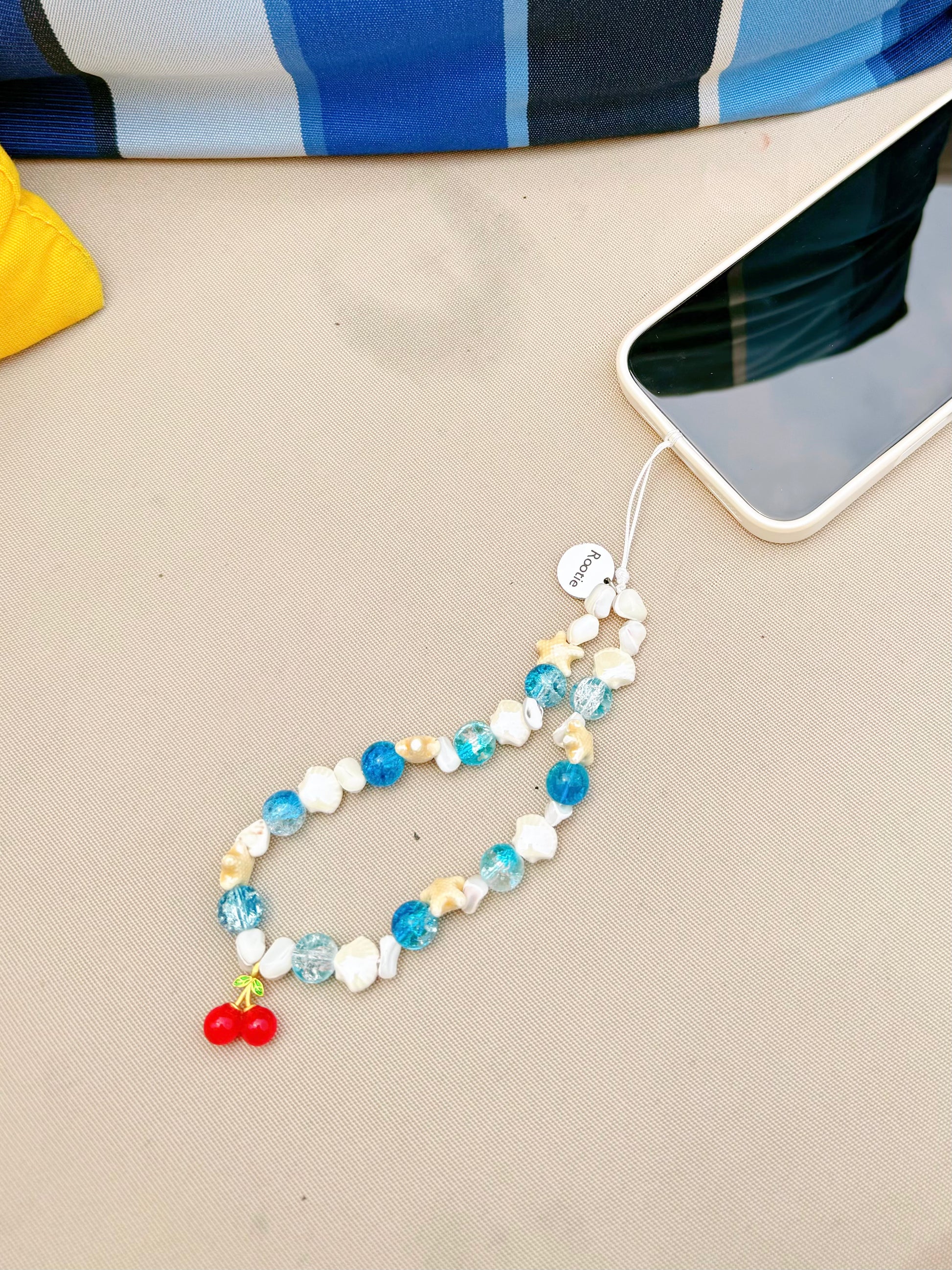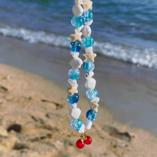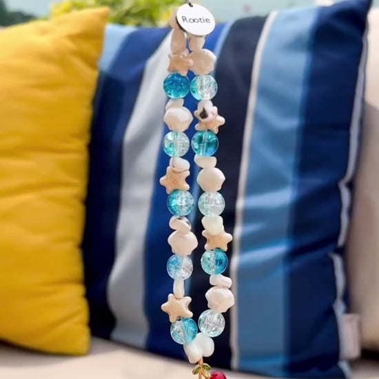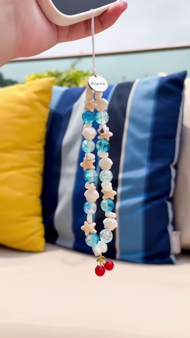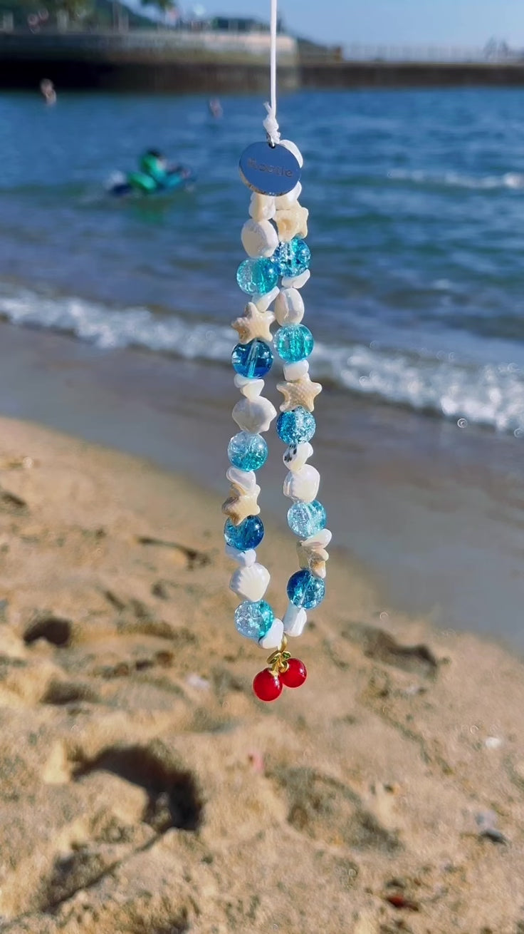 掌心盛載海洋之息,任思緒在鹹澀空氣中自在流動。這款吊飾蘊藏隨性的心情,海浪般瑩潤的珠串與細碎貝殼相連,櫻桃漂浮於遼闊蔚藍之上,隨潮聲呢喃著自由絮語。🌊🌊🍒材質:玻璃、貝殼、陶瓷、金屬長度:主飾 15 cm ﹑吊環 7 cm(可能有差異)產品包括:一個吊飾、一個絲質袋和一個禮盒