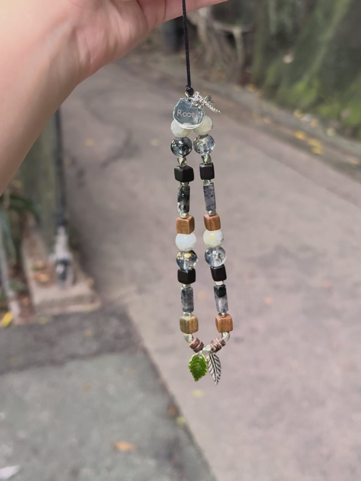 步入樹影斑斕的小徑,感受大自然林木、枒枝與綠意的氣息。象徵著紮根、成長與寧靜,這款吊飾展現平和從容的心情。蜻蜓穩穩停駐於搖晃的珠子上,宛如將整座森林的靜謐與力量,隨身同行。🍃🪨🪰材質:金屬、木材、玻璃、石材長度:主飾 15 cm ﹑吊環 7 cm(可能有差異)產品包括:一個吊飾、一個絲質袋和一個禮盒